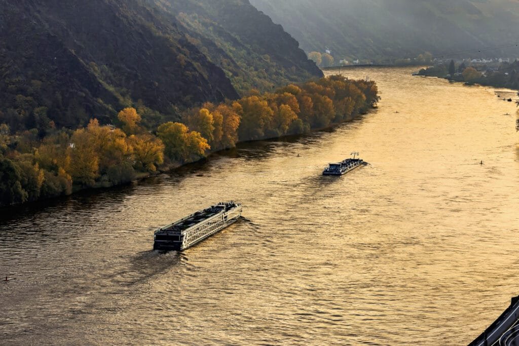 Schluchten、Schiffe、goldenes Licht:中国长江三峡的 Aufnahme? Nein,das ist der Rhein bei Boppard,nur 90 分钟。.